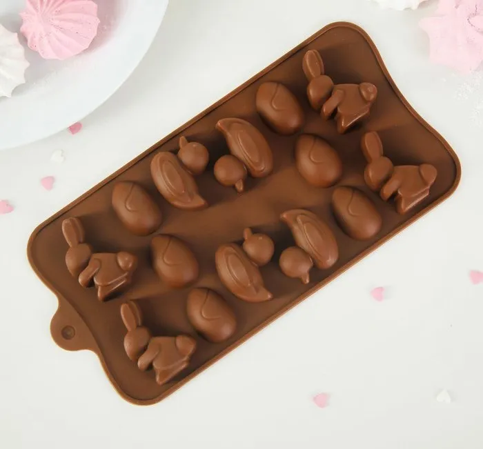 *Форма силиконовая "Зайцы, утки и яйца" 14 ячеек